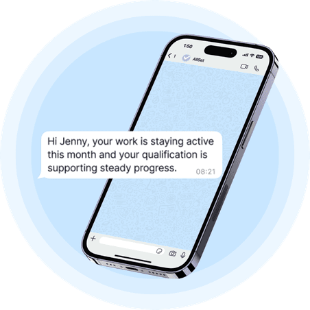 A qualification should not lose force the moment assessment ends. AllSet helps qualified professionals move from achievement into active work by supporting bookings, payments and day to day client admin in chat. That helps turn certification into steadier income, stronger early momentum and careers that are easier to sustain over time.